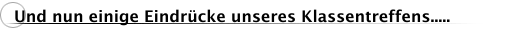 Ich weiß zwar nicht mehr was meine Hand hier auf der Schulter von Carola gesucht hat, aber es kann nicht schlimm gewesen sein. Sie hat mir keine Watsch`n gegeben. Ich möchte mich an dieser Stelle auch noch herzlich bei ihr bedanken für die tatkräftige Unterstützung bei der Organisation des Klassentreffens. Auch Christine S. und Gabi B. gilt mein herzlicher Dank. Soweit zum Klassentreffen. Die nächste Aktualisierung erfolgt nach dem nächsten Treffen. Joe